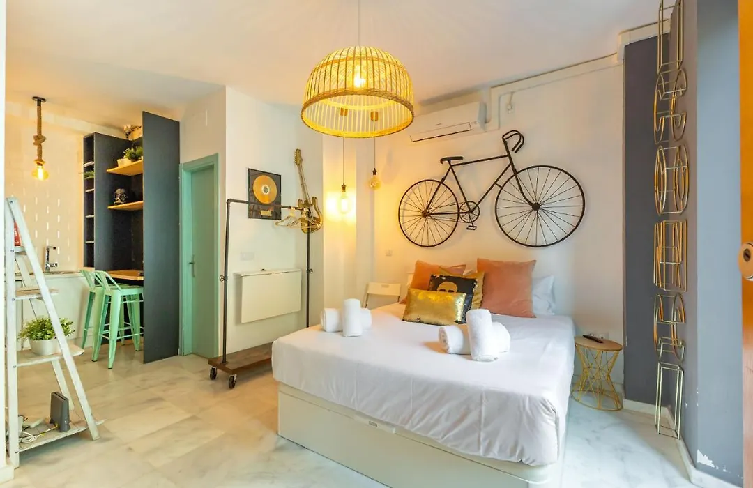 The 1-room Dos De Mayo Loft By Valcambre Seville apartment is located in the Old town district of Seville, approximately 5 minutes' walk from the dodecagonal military Torre del Oro Watchtower.